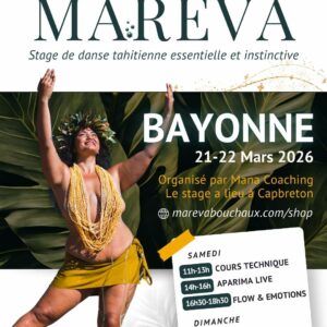 Je suis Mareva Bouchaux, j’enseigne la danse tahitienne depuis plus de 10 ans. Danseuse, enseignante et formatrice, je transmets à travers des prismes pédagogiques et thérapeutiques qui font aujourd’hui ma renommée. J’aime aller au-delà de la danse, dans les ressentis, le mouvement, la musique, le chant, la création collective et les émotions, dans ce que l’on ressent et pense de nous-même également. Et par-dessus tout dans cette culture polynésienne que je ressens dans mes entrailles.