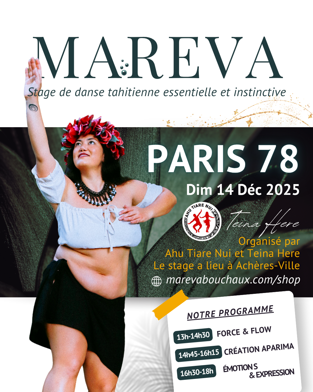 Stage de danse tahitienne à Achères 78260, le dimanche 14 décembre avec Mareva Bouchaux à partir de 13H00